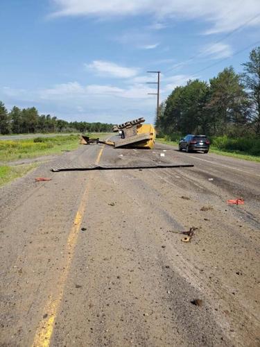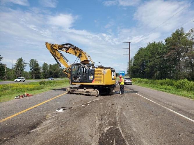 Backhoe Strikes Overpass Falls Off Trailer Near Black River Falls News Wqow Com